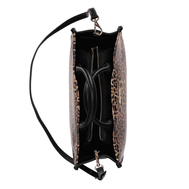 Descripción: Bolso con Estilo de Animal Print: Este bolso presenta un diseño llamativo con estampado de animal print y detalles lisos en las asas y la correa. Incluye un cierre superior de cremallera y espacio interior amplio, ideal para añadir un toque atrevido y moderno a cualquier look.