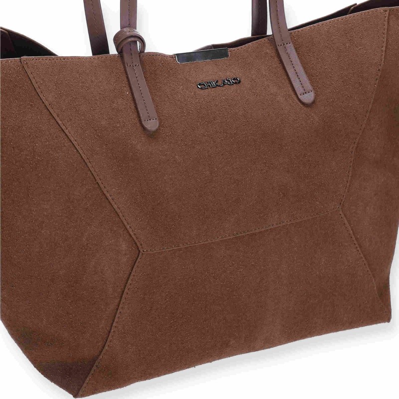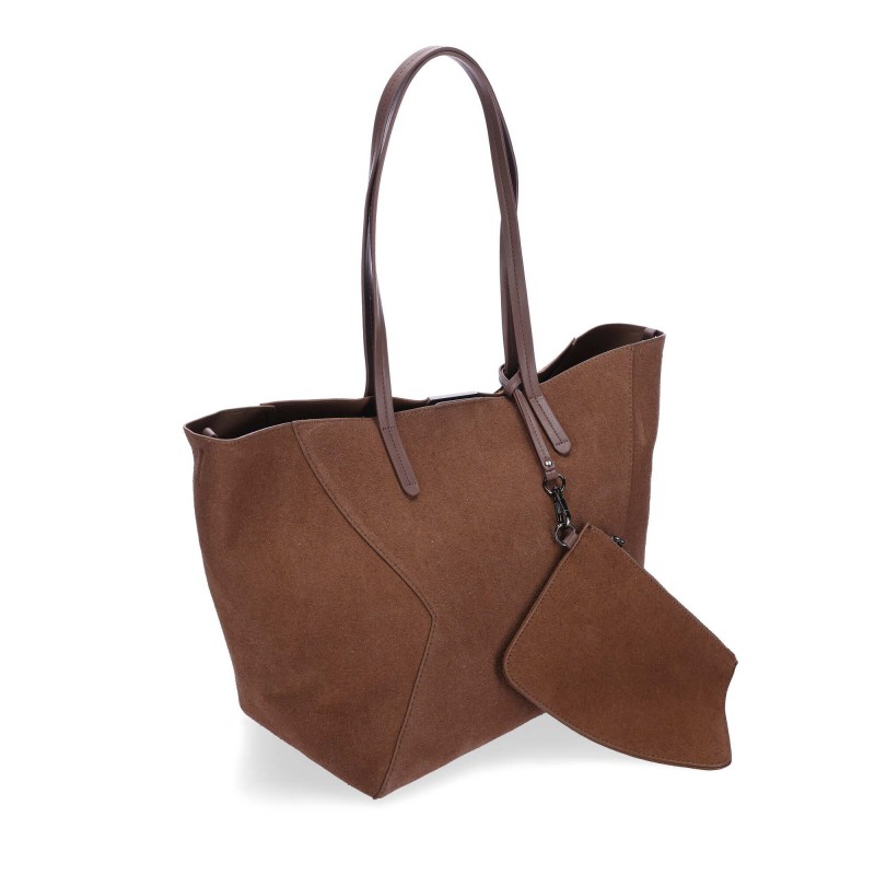 Descripción: Bolso Tote con Estilo Geométrico: Este bolso presenta un diseño elegante y funcional con un patrón geométrico cosido en el frente. Incluye dos asas largas y un detalle metálico decorativo cerca de la parte superior. Ideal para quienes buscan un accesorio versátil y con estilo.