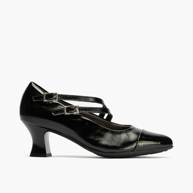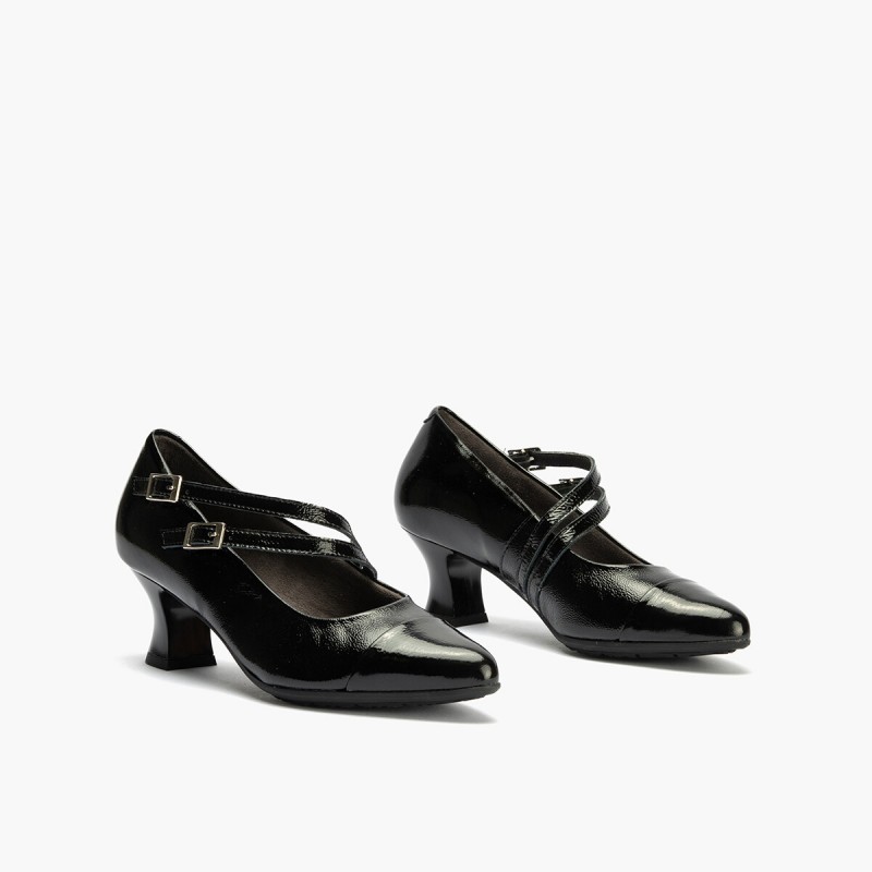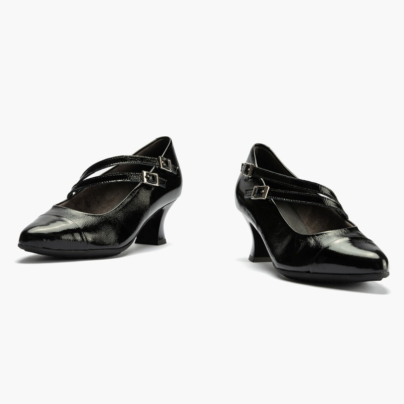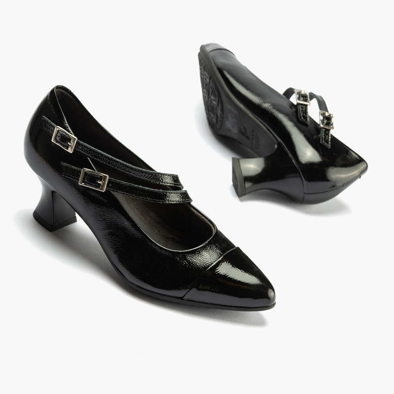 Descripción: Estas merceditas para mujer se elaboran en colores lisos con brillo, de charol. Tienen el diseño clásico de las Mary Jane con una tira con hebilla doble en el empeine. El forro y la plantilla interior son de tela, con plantilla extraible. Se trata de un modelo con tacón muy confortable de 5.5cm de alto. La suela es de goma antideslizante. Fabricado en España. Puntera fina. Modelo clásico y sencillo.