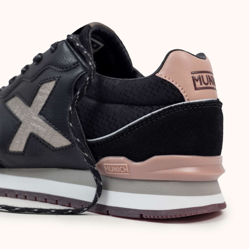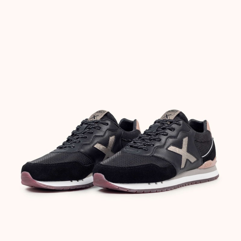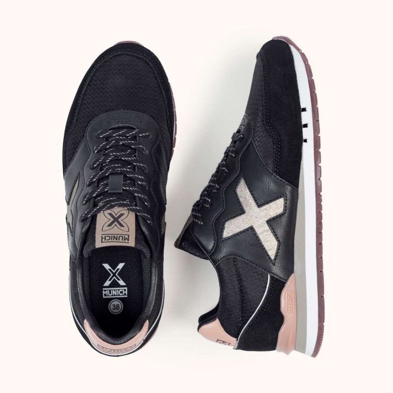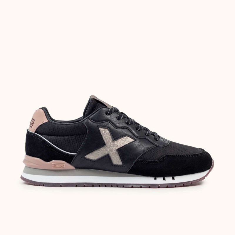 Descripción: Versatilidad casual y urbana. La Dash Woman es la zapatilla retro running inspirada en los modelos clásicos de MUNICH. De look informal, deportivo y muy urbano, este modelo, que destaca por su doble suela, nos devuelve lo mejor de un diseño atemporal.