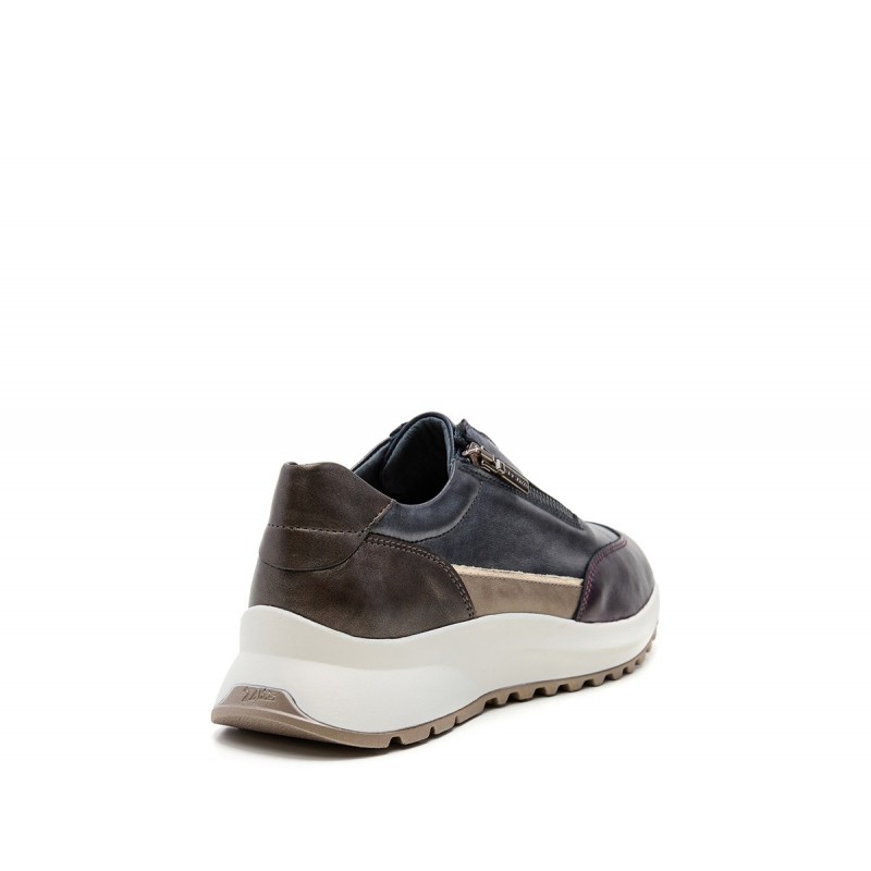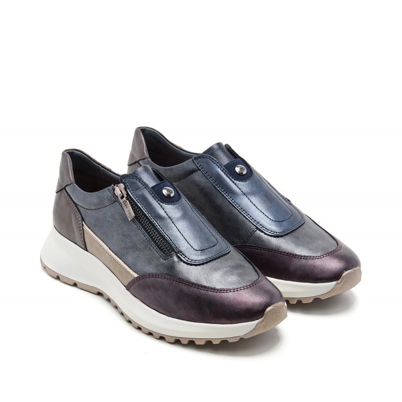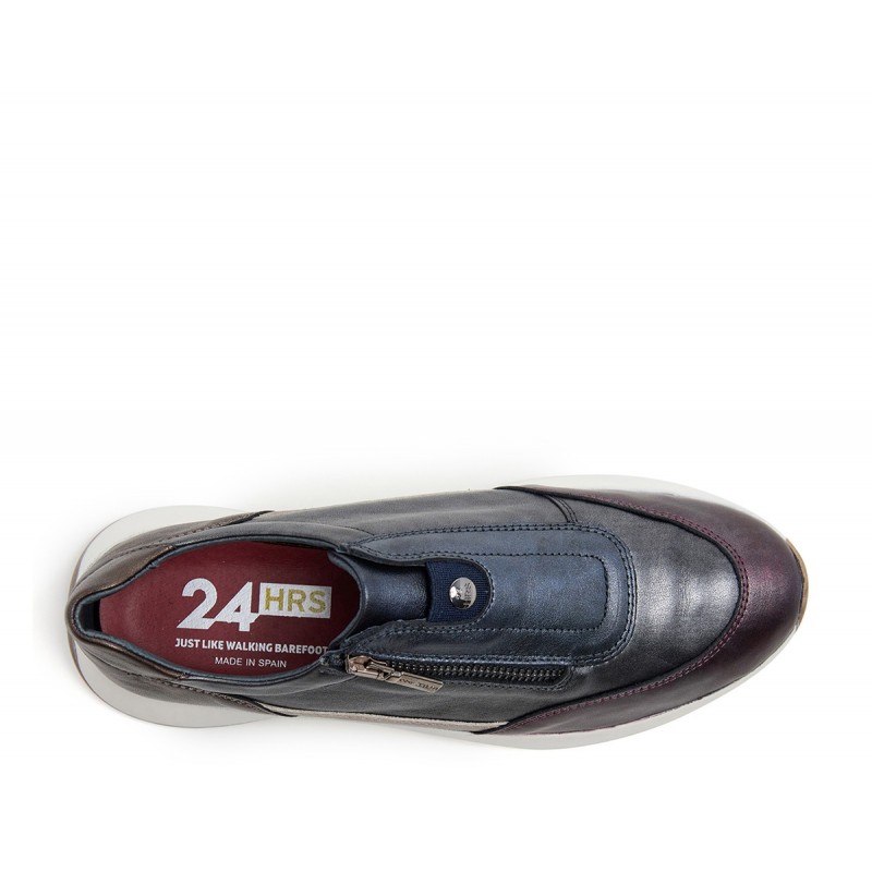 Descripción: Sneaker mujer diseñada combinada en piel metalizada alta selección con cierre de cremallera. Tirador metálico y detalle de marca metálico, costuras vistas y puntera redonda. Suela bicolor PU con 5 cm de altura, tecnología exclusiva y plantilla extraíble incluida. Es esa opción casual-comfy que tanto te gusta.