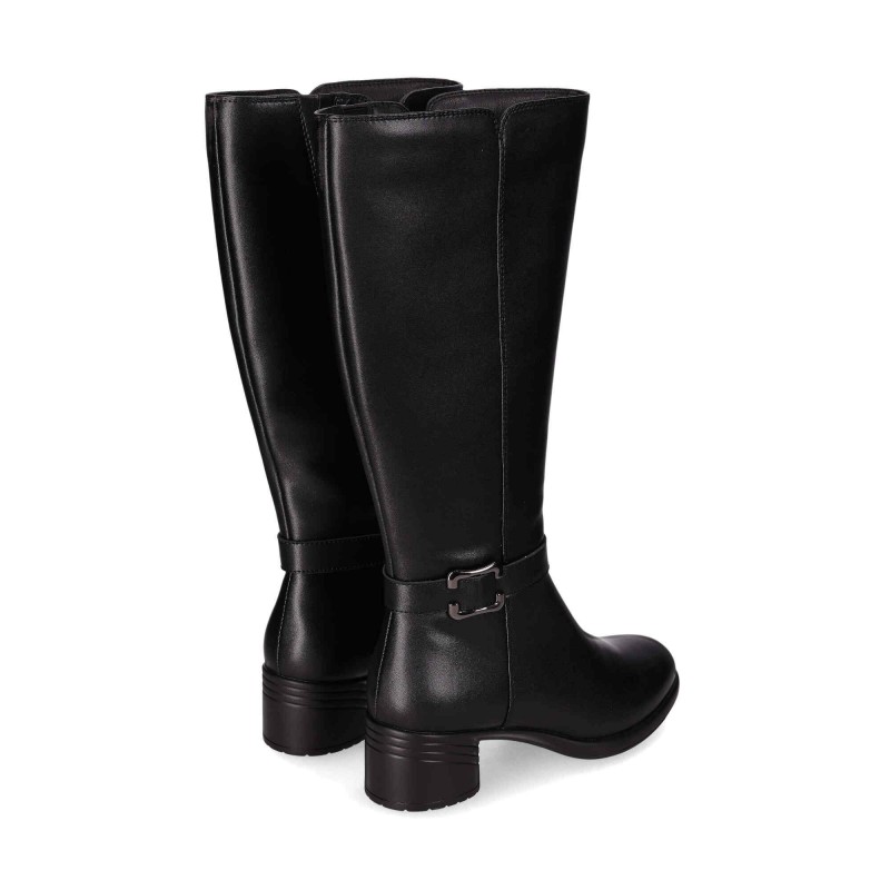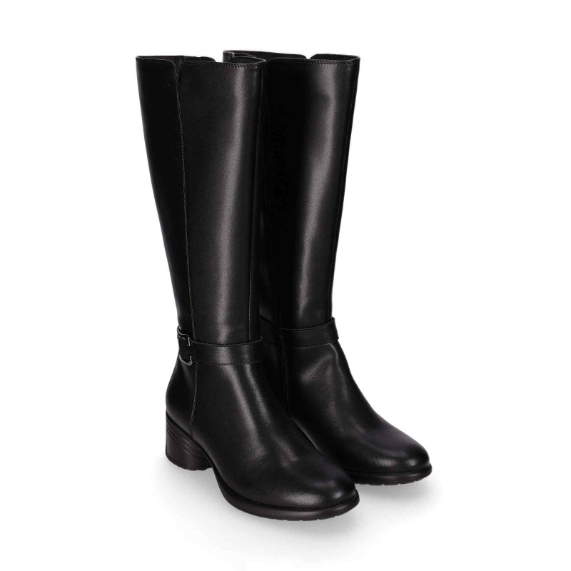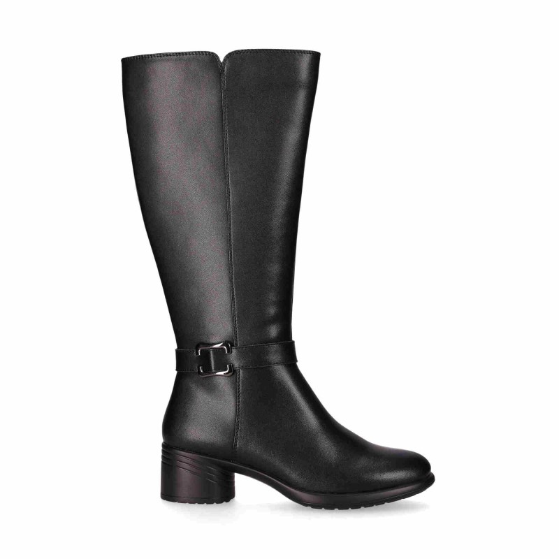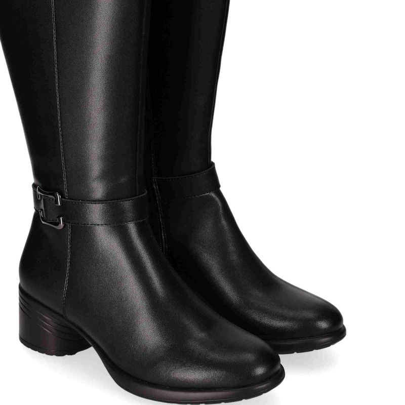 Descripción: Bota alta de cuero con tacón medio: Este elegante botín de cuero pulido combina un diseño minimalista con detalles en forma de pulsera con hebilla que matiene el estilo sofisticado. La costura vertical añade un toque único, mientras que la suela texturizada proporciona tracción y estabilidad. ¡Perfecto para dar el toque classy a cualquier look!