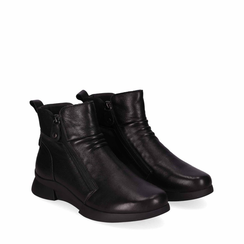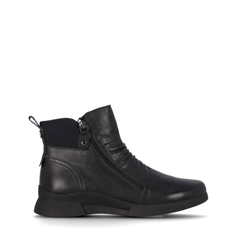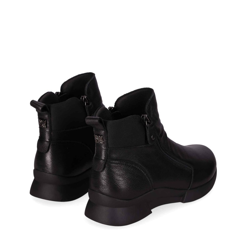 Descripción: Botín de cuero con detalles rugosos: Este botín destaca por su diseño en cuero con textura rugosa, que añade un toque distintivo y único. Su cremallera lateral asegura un ajuste cómodo y fácil y la suela gruesa estilo deportivo proporcionan el toque moderno. ¡Perfecto para un look actual y funcional!