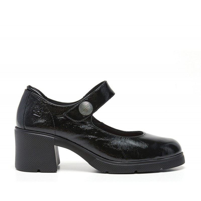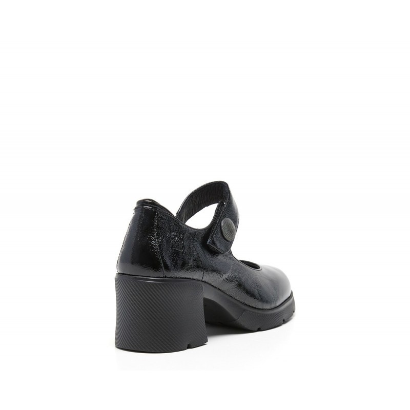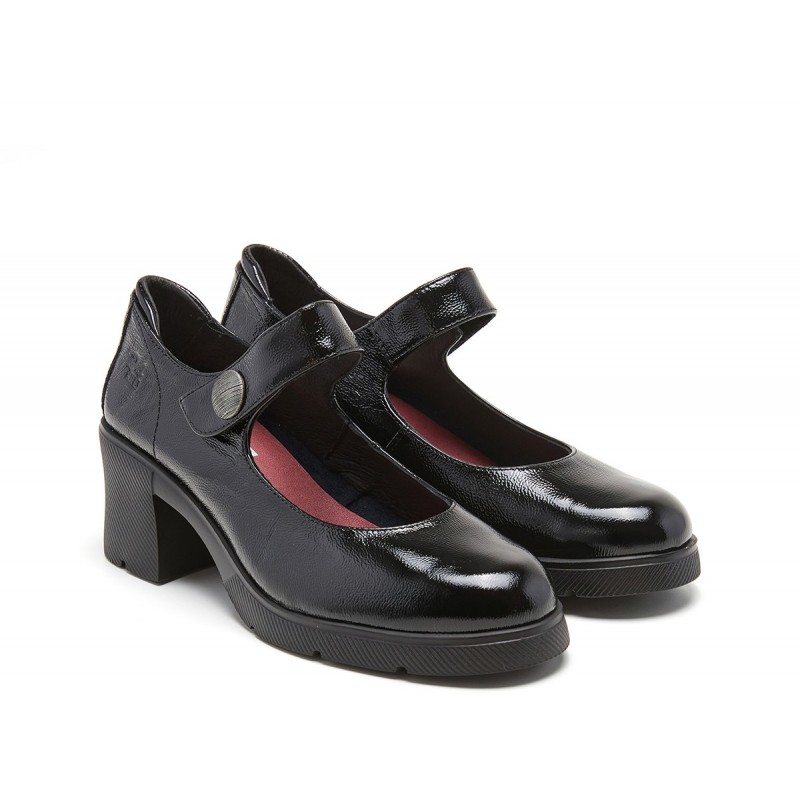 Descripción: Merceditas mujer diseñadas en piel con acabado charol alta selección color negro y cierre de velcro. Costuras vistas, botón decorativo y marca grabada en lateral. Suela en EVA ultraligera con tacón de 6 cm y comodidad absoluta. Es el modelo que eleva cualquier look.