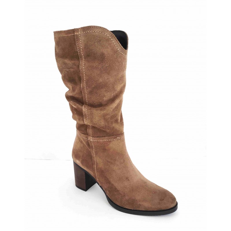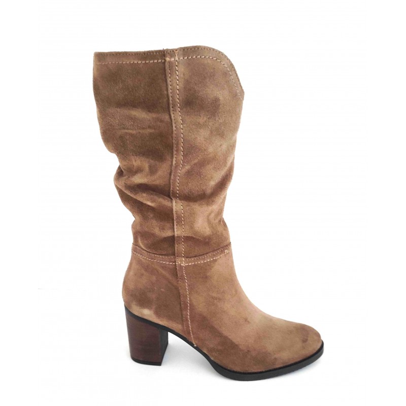 Descripción: Bota de serráje piel de caña arrugada con cierre cremallera.