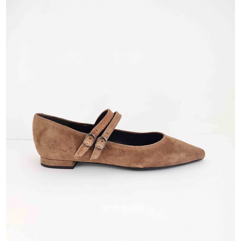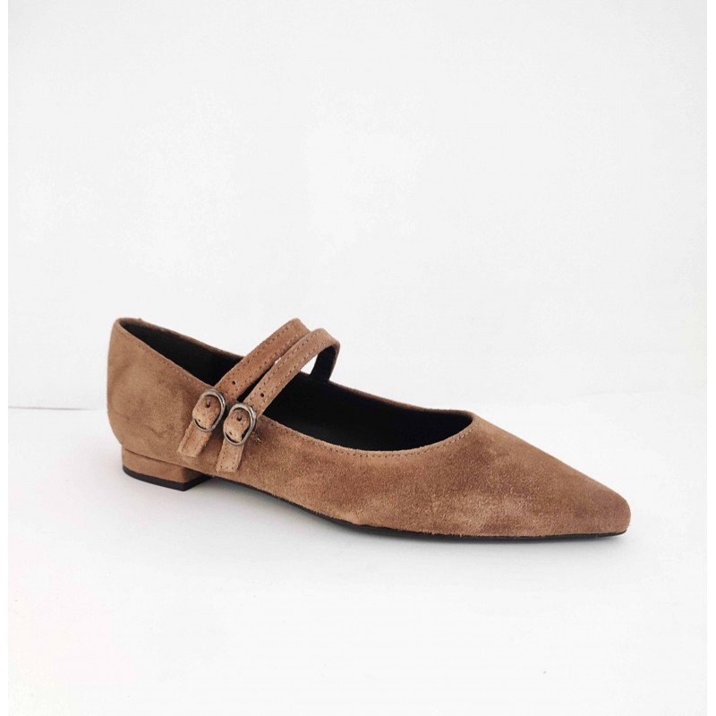Descripción: Mercedita de mujer fabricadas en serraje piel cuero acabadas en punta bajas y ajuste con hebilla.