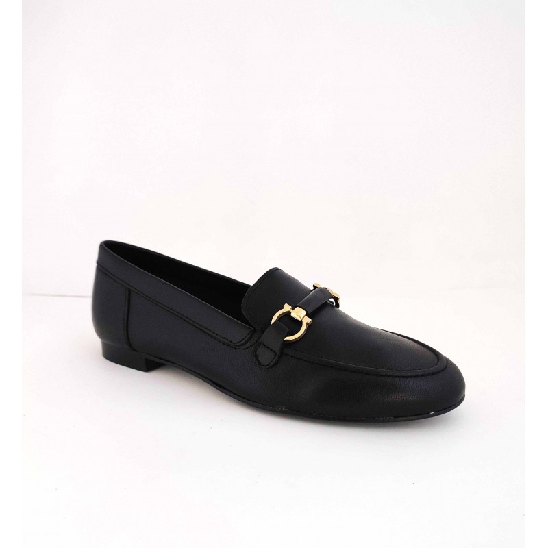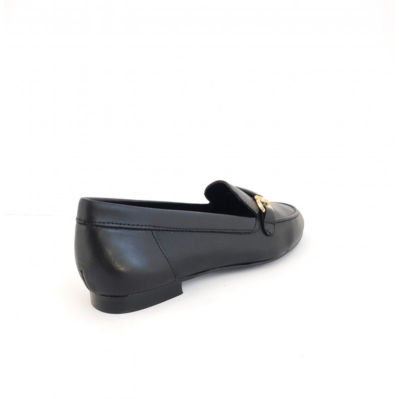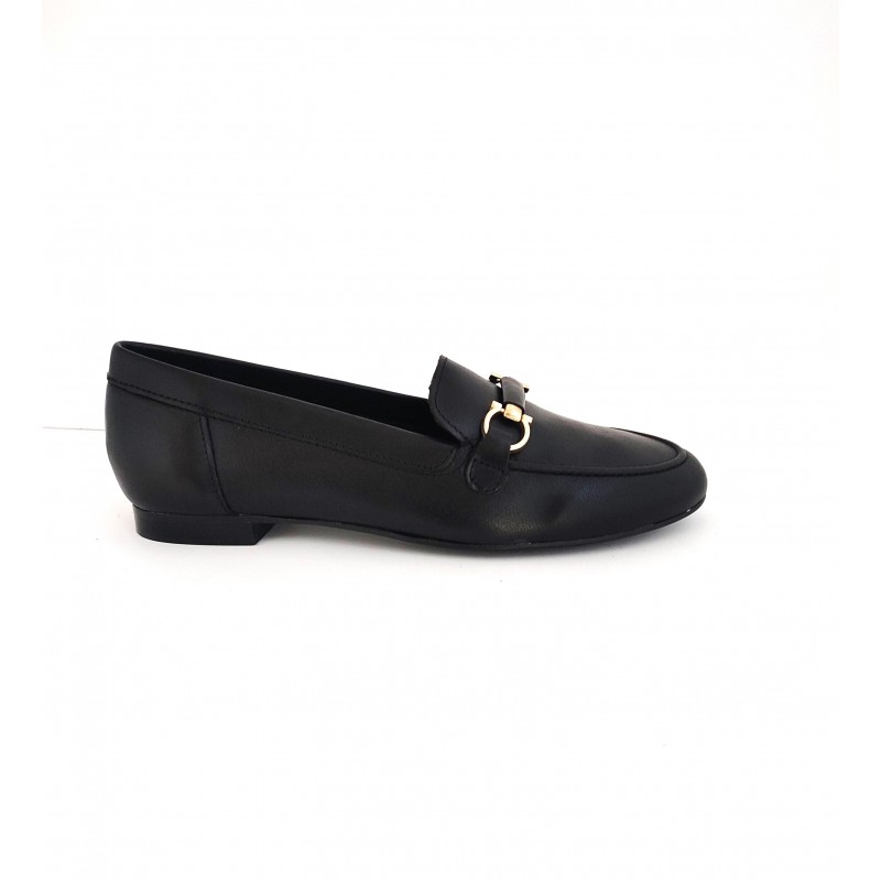 Descripción: Mocasines de piel color negro con estribo metálico forrado en piel. Corte plantilla y forro en piel. Plantilla muy acolchada para asegurar un mayor confort. Piso flexible. Fabricación made in spain