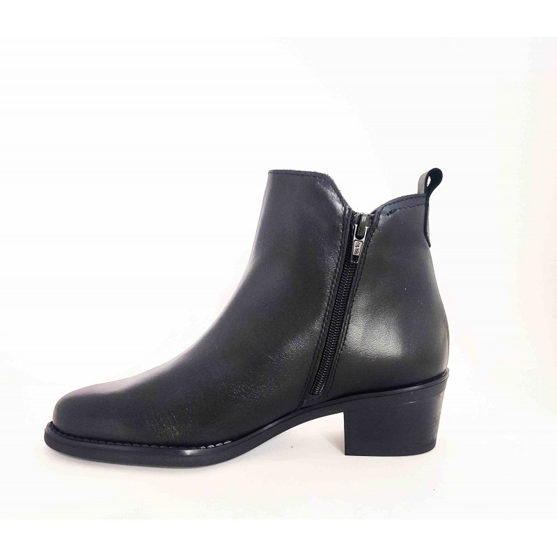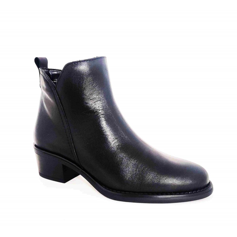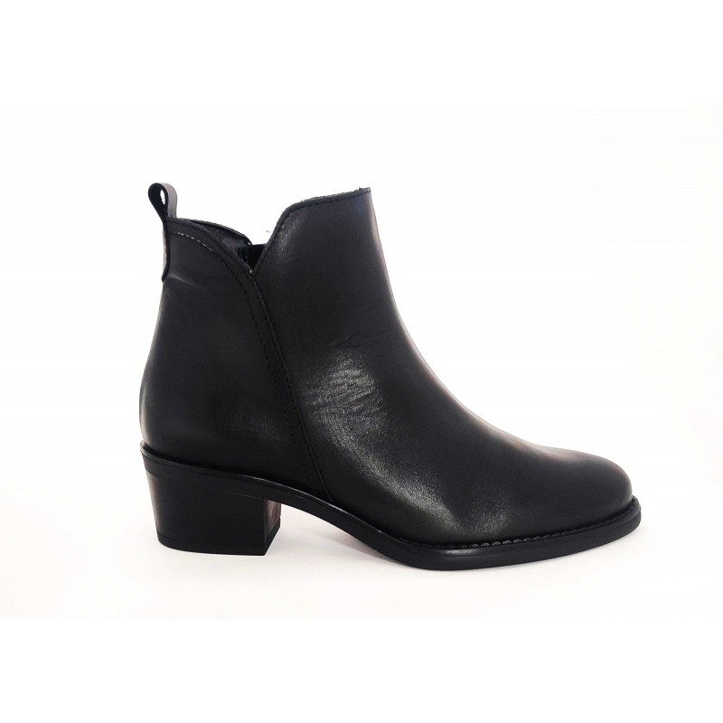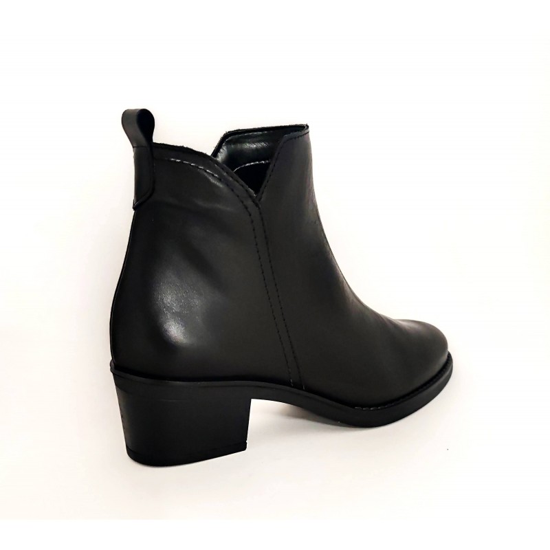 Descripción: Botines de mujer en piel color negro, suela de goma y puntera redonda. Fabricados en España