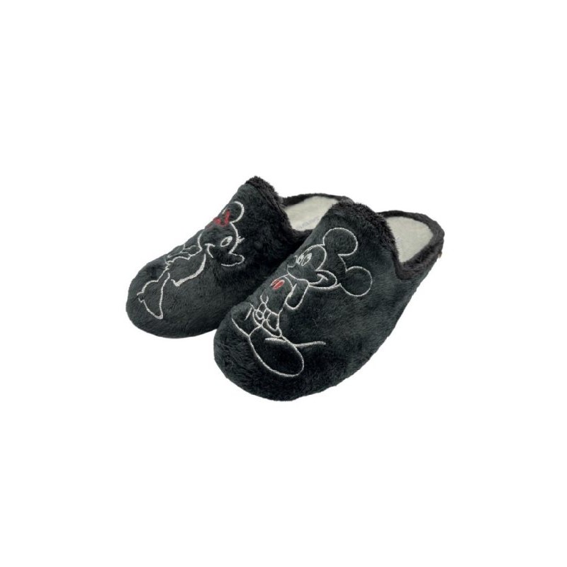 Descripción: Zapatillas de casa abiertas de mujer en color negro y en representación llevan unos dibujos de Mickey y Minnie.