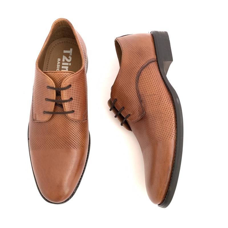 Descripción: Zapatos de vestir en piel de color cuero, con cierre de cordones y con detalle perforado en laser
