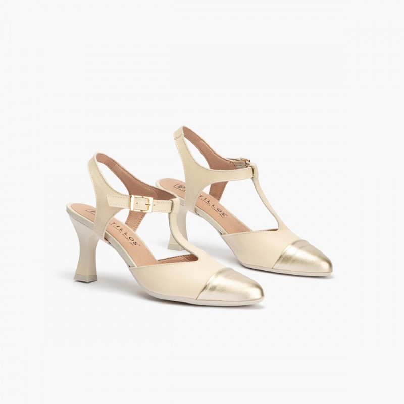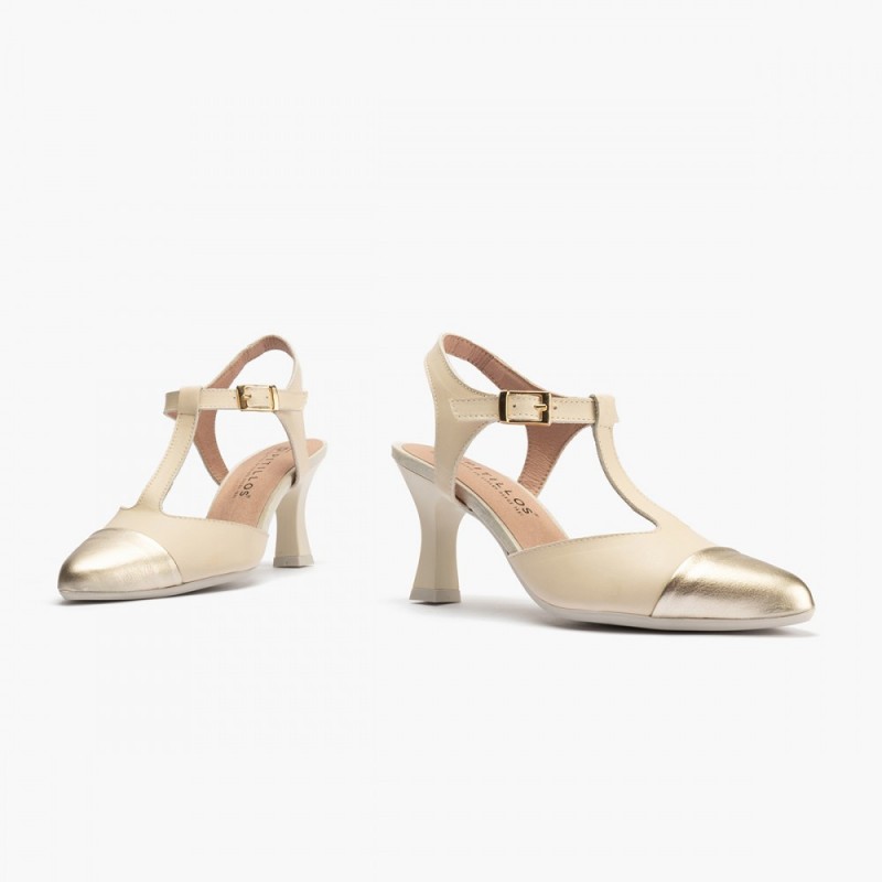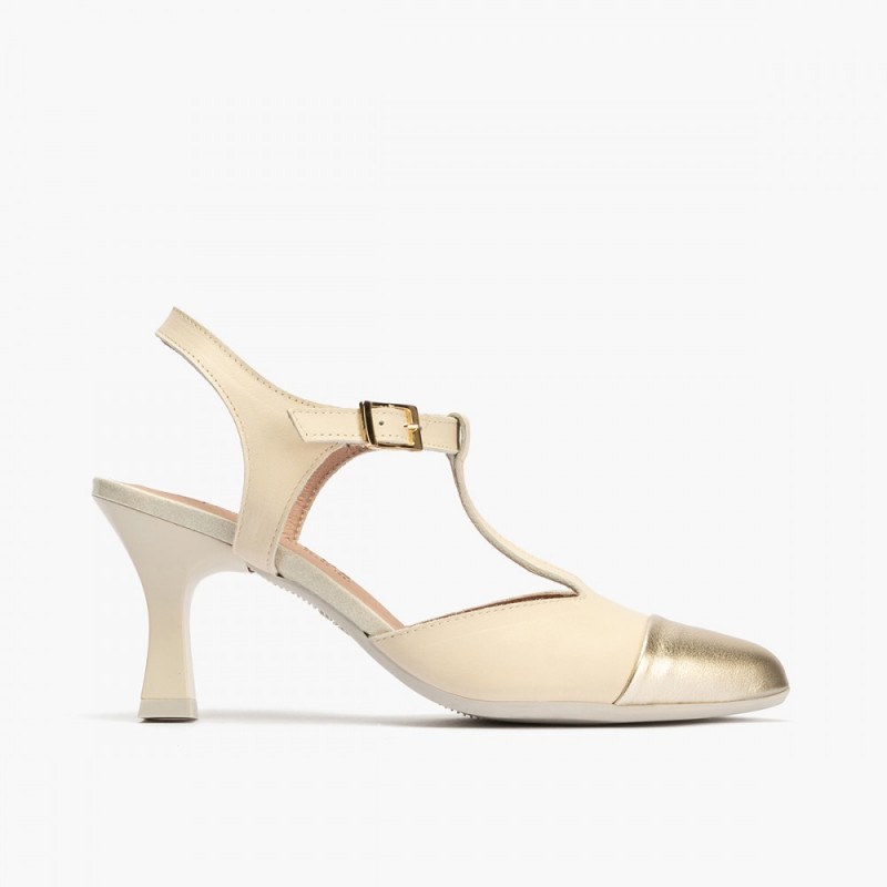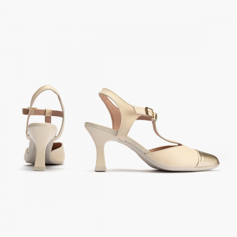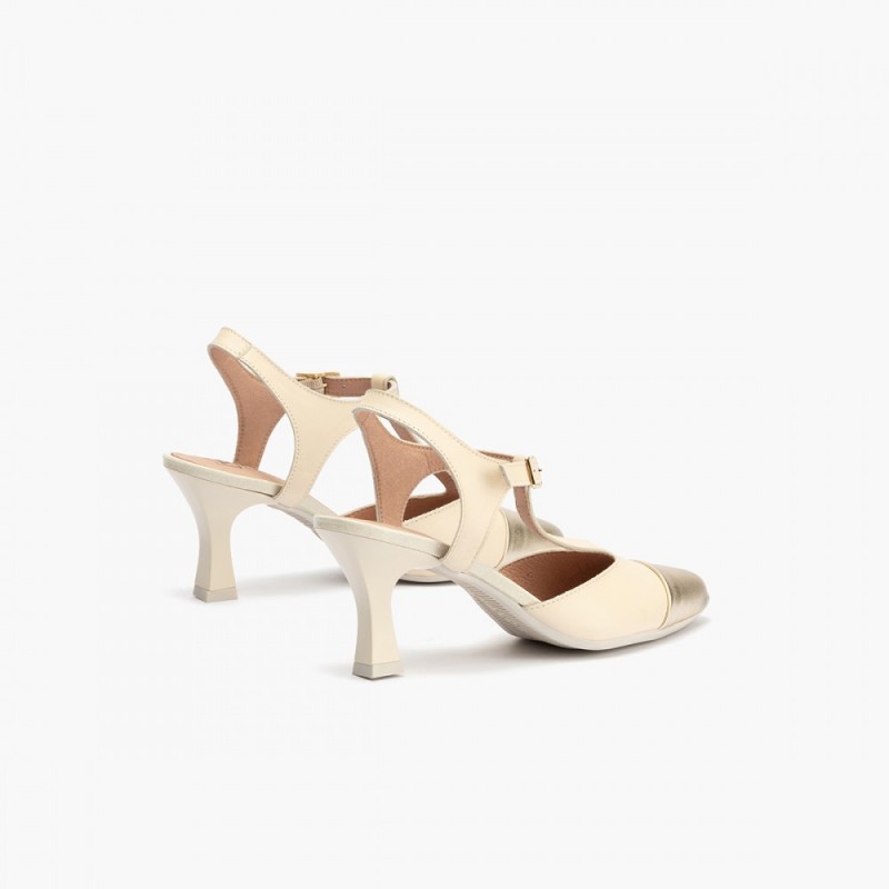 Descripción: Zapatos de salón de mujer gilda en piel con puntera afilada y tacón embudo CREMA: Confeccionados en piel crema, los zapatos de salón modelo Gilda presentan una puntera afilada y un tacón embudo, proporcionando un estilo sofisticado y atemporal
