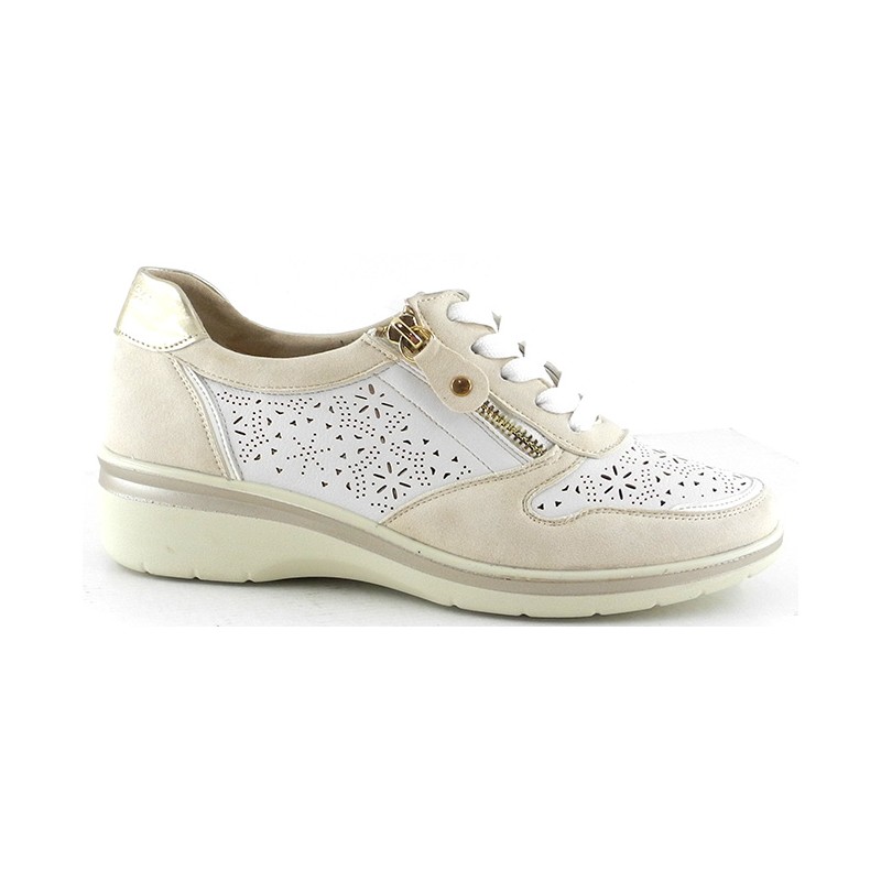 Descripción: Zapatillas de mujer en ante blanco con cierre cremallera