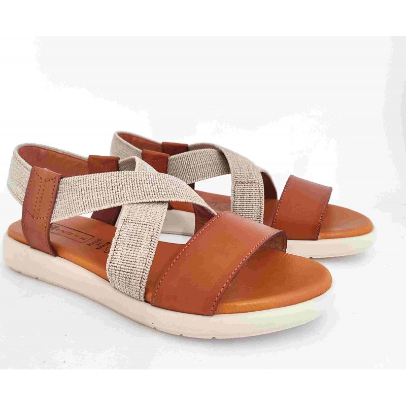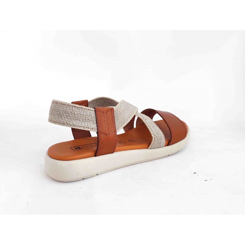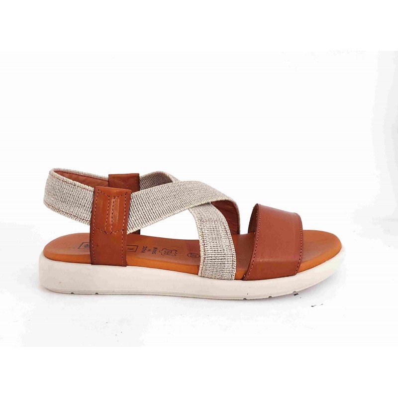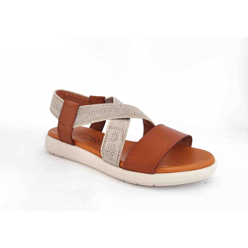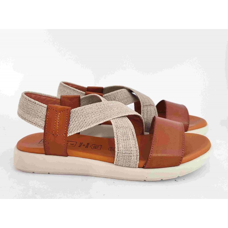 Descripción: Sandalia cuña de mujer con dos tiras elásticas cruzadas para una mayor sujeción del pie. Pala fabricada en piel y plantilla de gel forrada de piel.