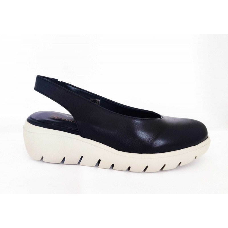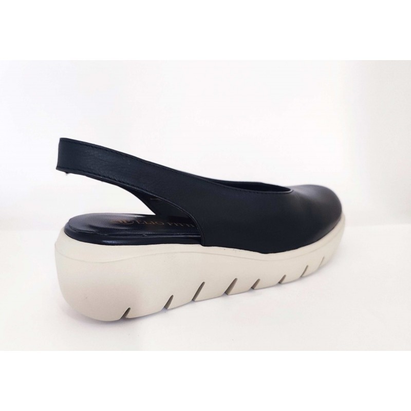 Descripción: Sandalias de mujer en piel tipo cuña corrida en color negro.