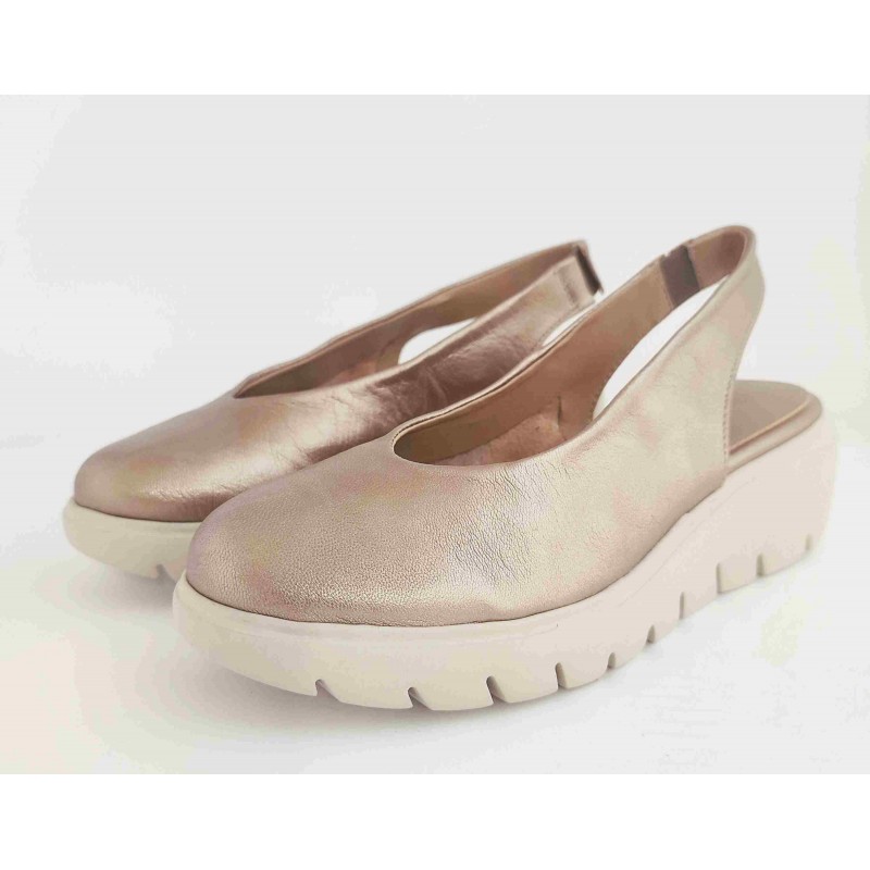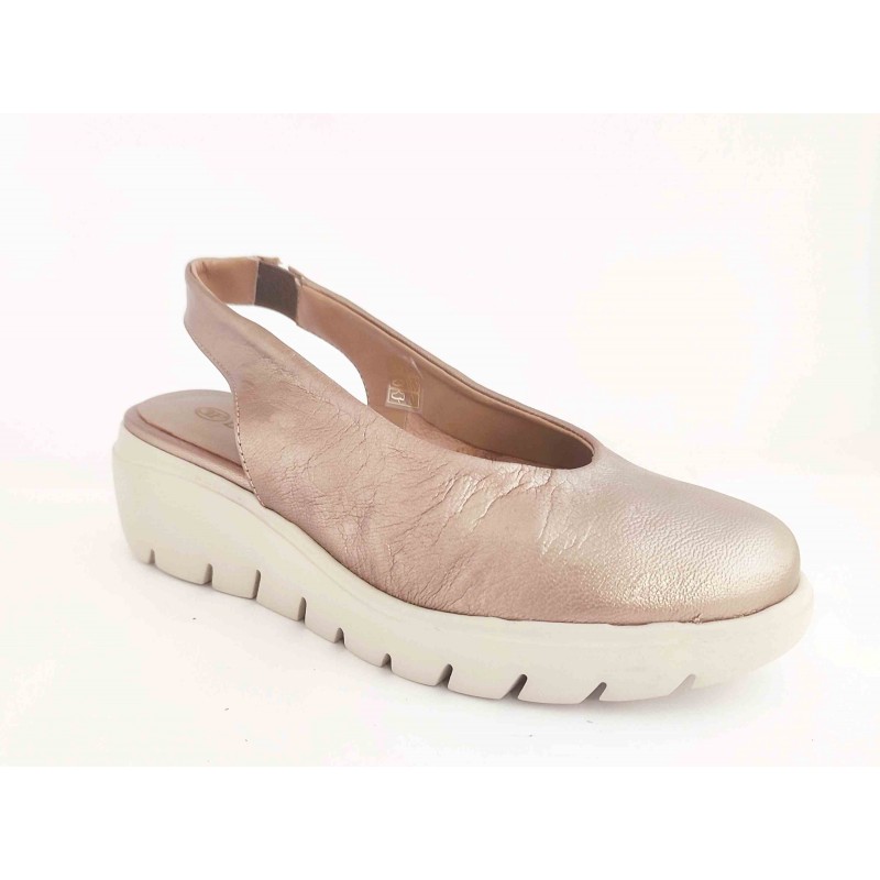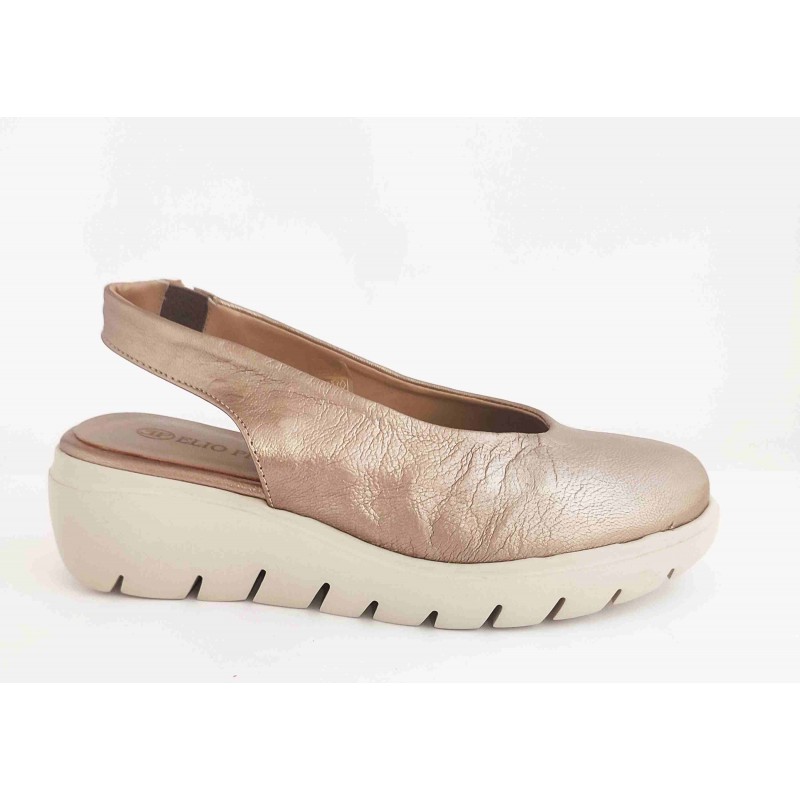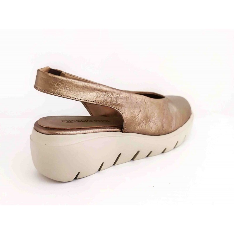 Descripción: Sandalias de mujer en piel tipo cuña corrida en color bronce.