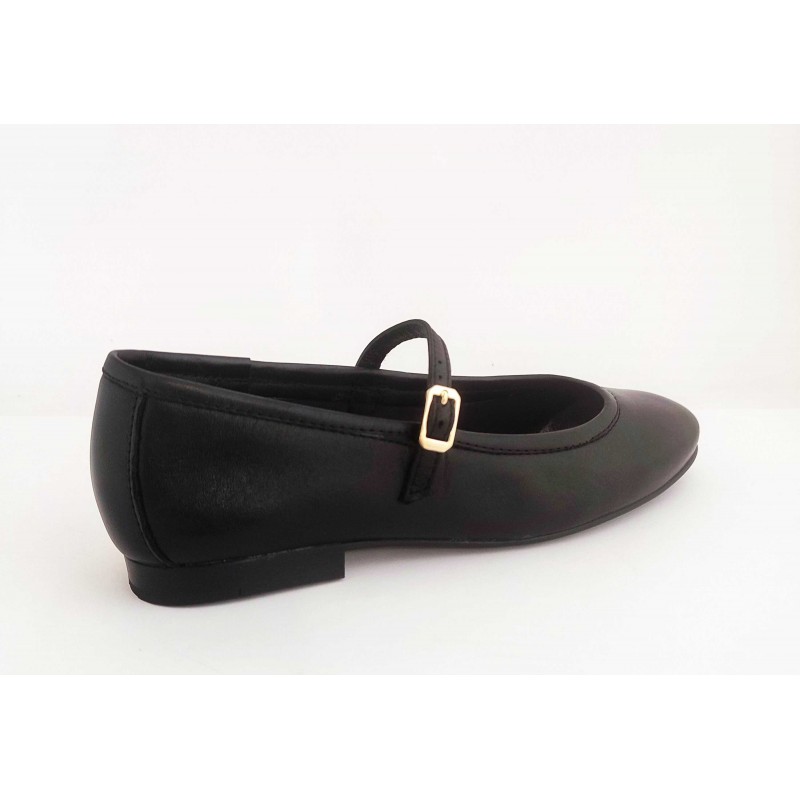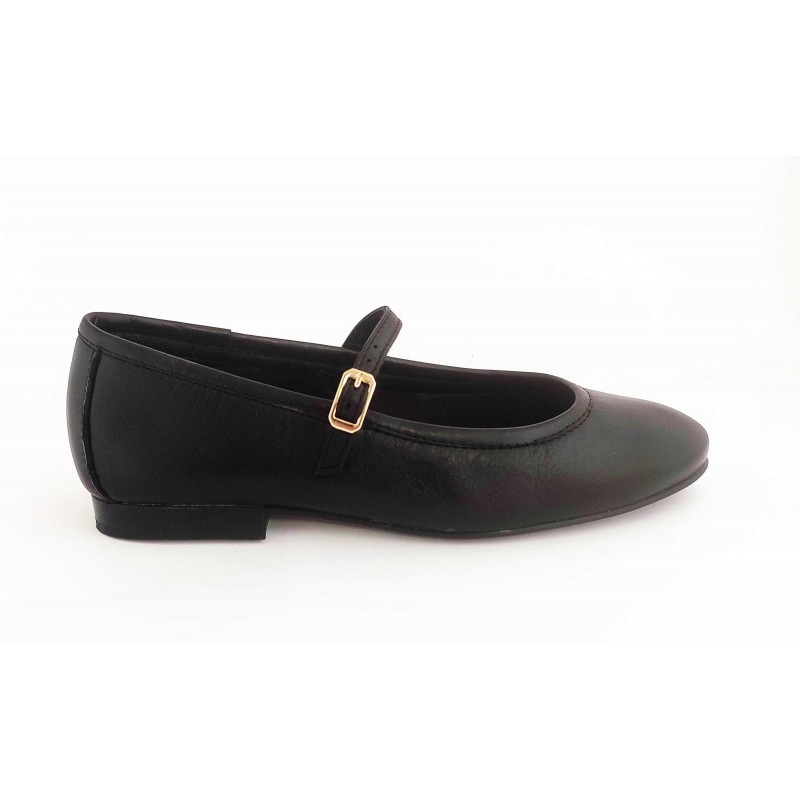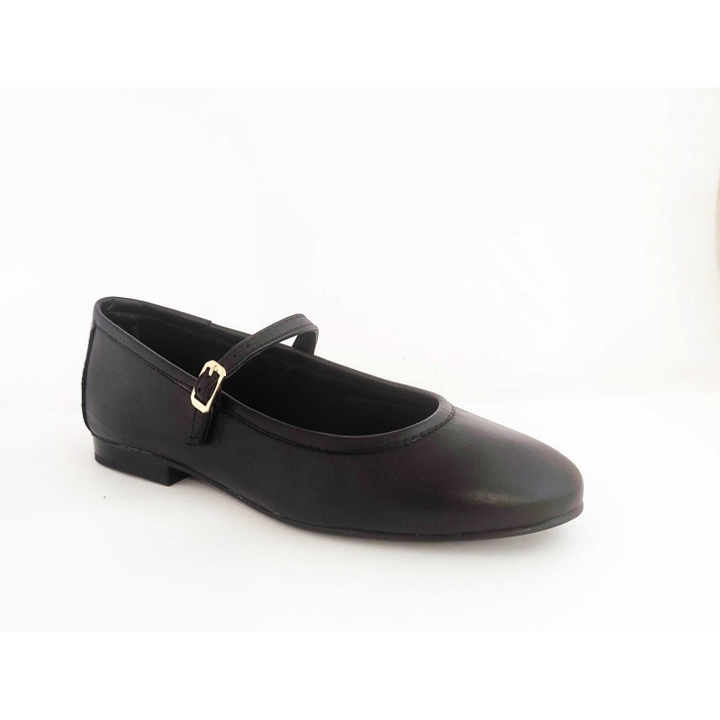Descripción: Merceditas de mujer en piel negra con tacón bajo tipo tapa.