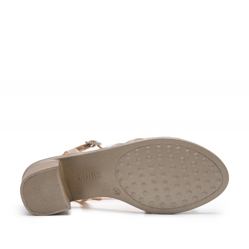 Descripción: Sandalia mujer diseñada en piel combinada con acabado metalizado y cierre de hebilla lateral con detalle decorativo. Suela PU alta calidad con tacón de 6 cm y comodidad innata. Es esa opción a medio camino entre casual y elegante que no pasará desapercibida.